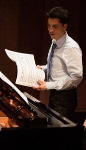 Having previously studied in Paris with pianists Bruno Rigutto and Hortense Cartier-Bresson, he also earned a Master’s degree at the Hochschule für Musik “Hanns Eisler” in Berlin, in the class of Eldar Nebolsin. He also receives guidance from eminent artists such as Janine Jansen, Tabea Zimmermann, Jean-Marc Luisada, Jean-Efflam Bavouzet, Kirill Gerstein, Pascal Devoyon, and Richard Goode.